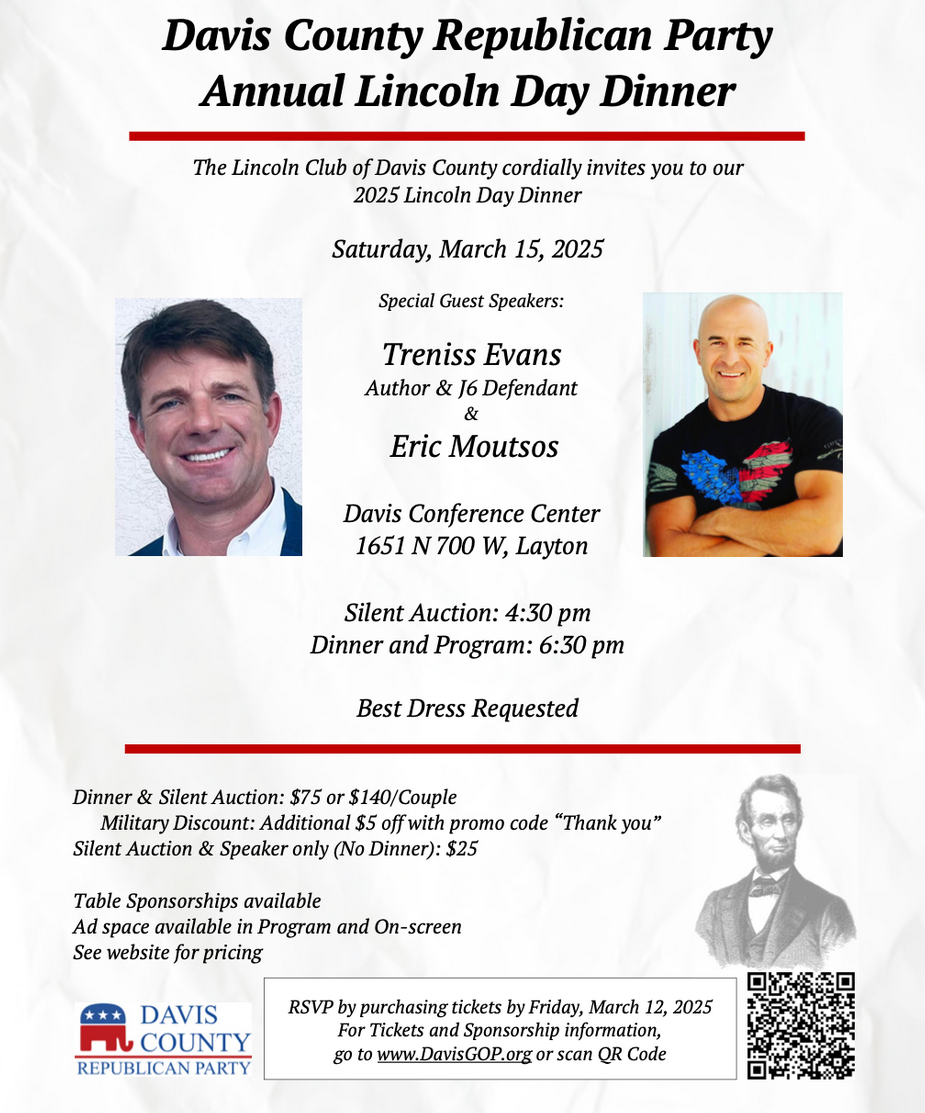 A Jan. 6 rioter who reportedly knocked back shots of Fireball in Nancy Pelosi’s office is set to take center stage as the keynote speaker at the Davis County Republican Party’s Lincoln Day fundraising dinner next week.