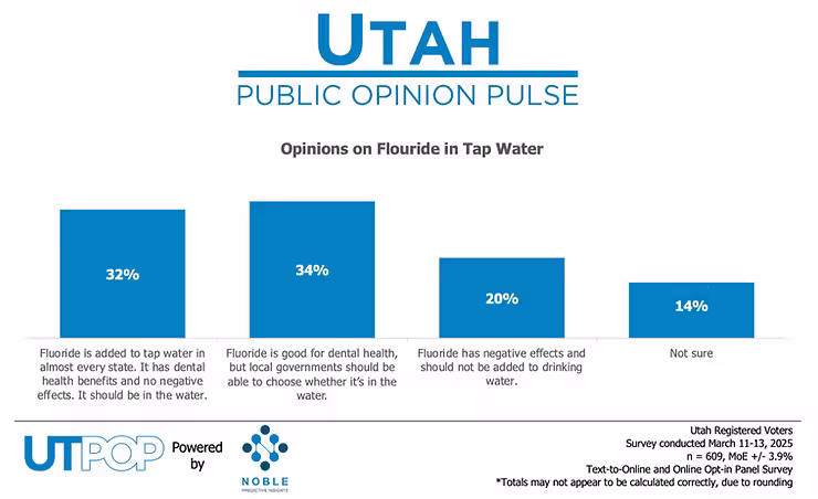 The poll suggests there is not a groundswell of public support for removing fluoride from water systems. In fact, just two years ago, voters in Brigham City overwhelmingly rejected a ballot initiative to end fluoridation in that city.