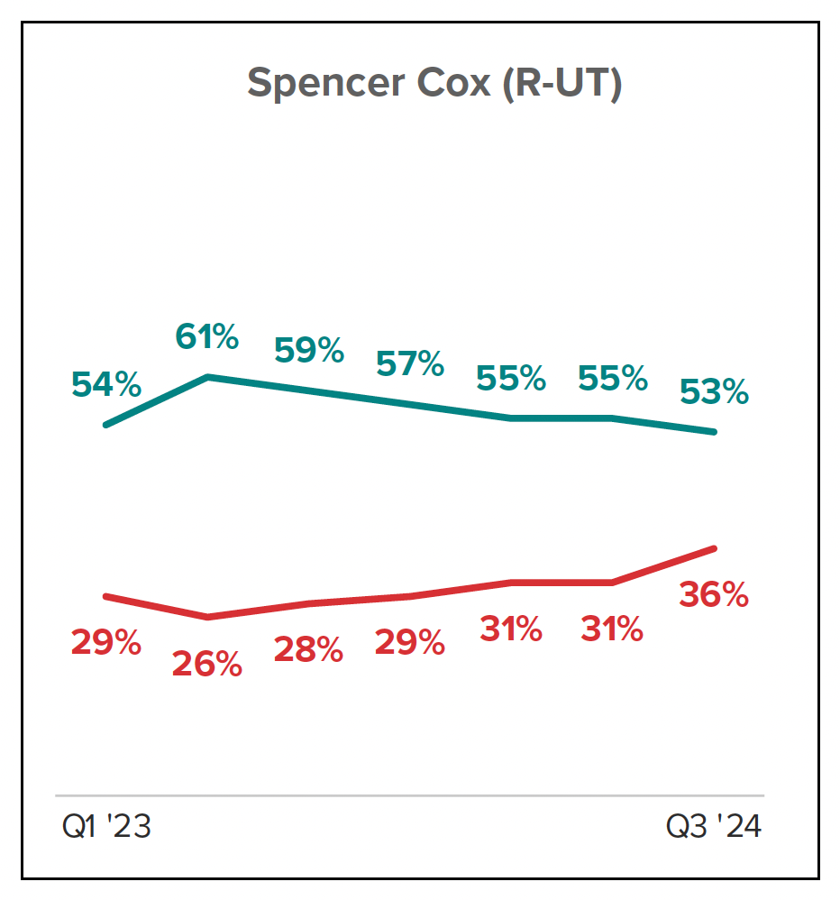Last spring, the Morning Consult survey showed 61% of Utahns approved of Cox's job performance. That approval has steadily declined since, dropping to the current 53%.