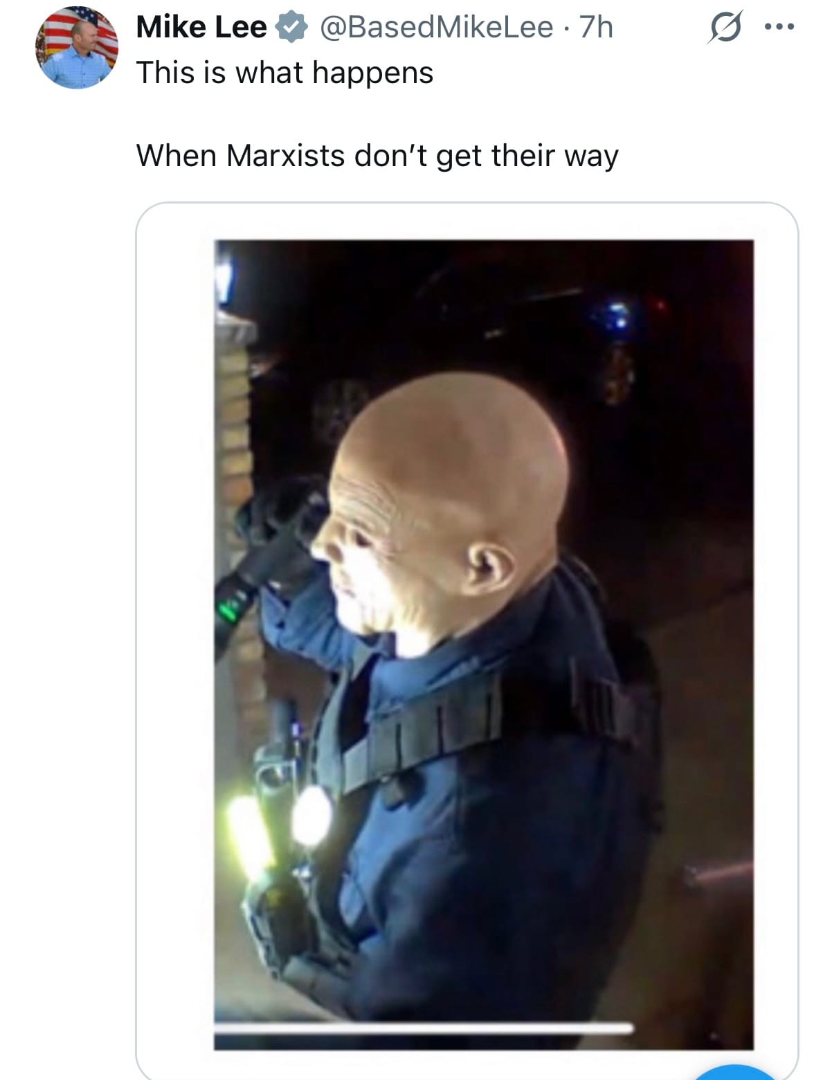 In one now-deleted post, Lee captioned a photo of the alleged shooter wearing a latex mask, "This is what happens when Marxists don't get their way."